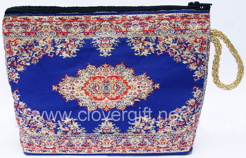 Authentic Turkish Cosmetic Bags has a woven miniuatue rug with unipue Persian Rug designs on each side,